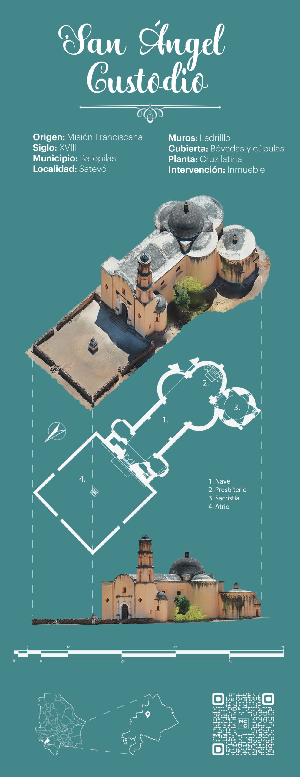 Siguiendo el curso del río hacia el sur del poblado, a poco más de una legua —unos siete kilómetros—, se levanta la imponente estructura de la antigua Misión del Santo Ángel Custodio de Satevó, rodeada de algunas casas dispersas. La presencia jesuita en esta zona antecede a la fiebre minera: en 1698, el misionero Martín Benavides, S.J., registró la existencia del pueblo de Satevó, que contaba con 40 familias, aunque aún carecía de iglesia y de residencia para el sacerdote.